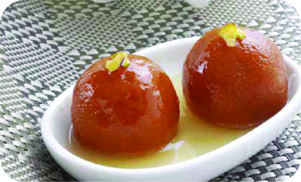 A traditional Indian dessert made from milk and served in golden syrup.