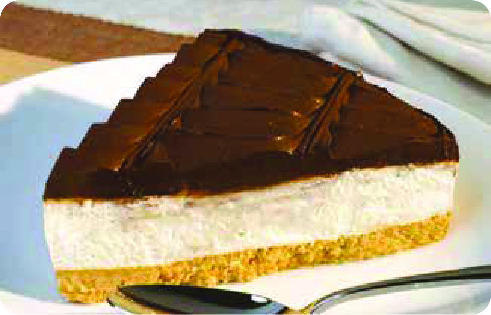 A light biscuit base topped with a rich and creamy toffee cheesecake, finished with a layer of decadent chocolate.